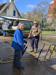 Nettoyage de la cale et des abords, désherbage, débroussaillage, mais aussi grands rangements dans les armoires du bureau, les archives, et la bibliothèque, ainsi que le frigo de la cuisine !